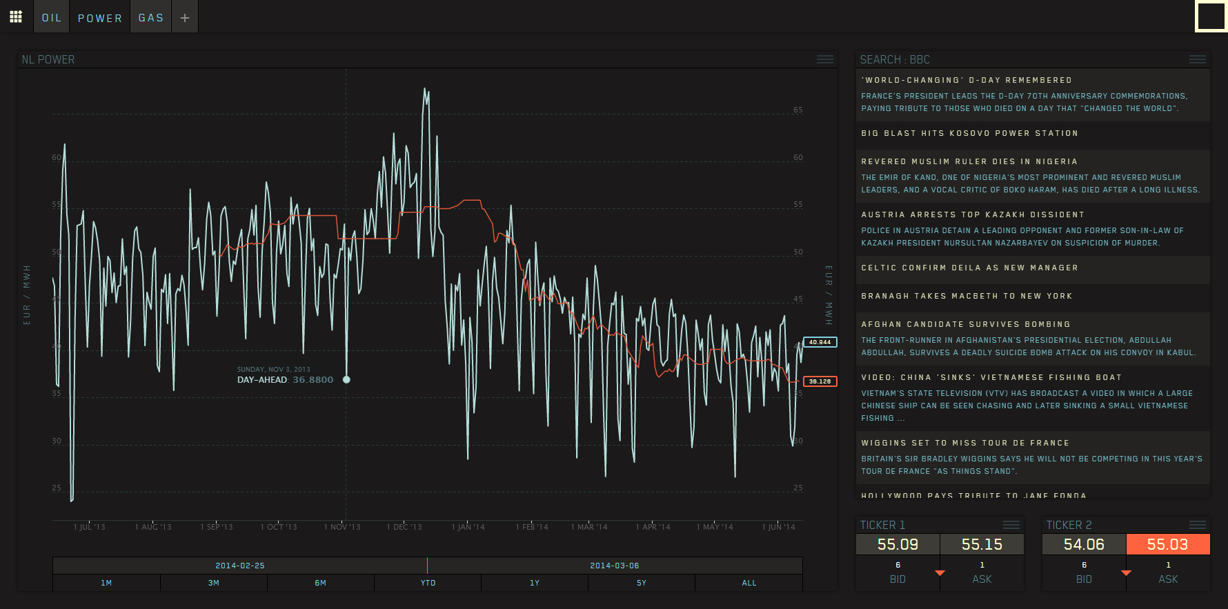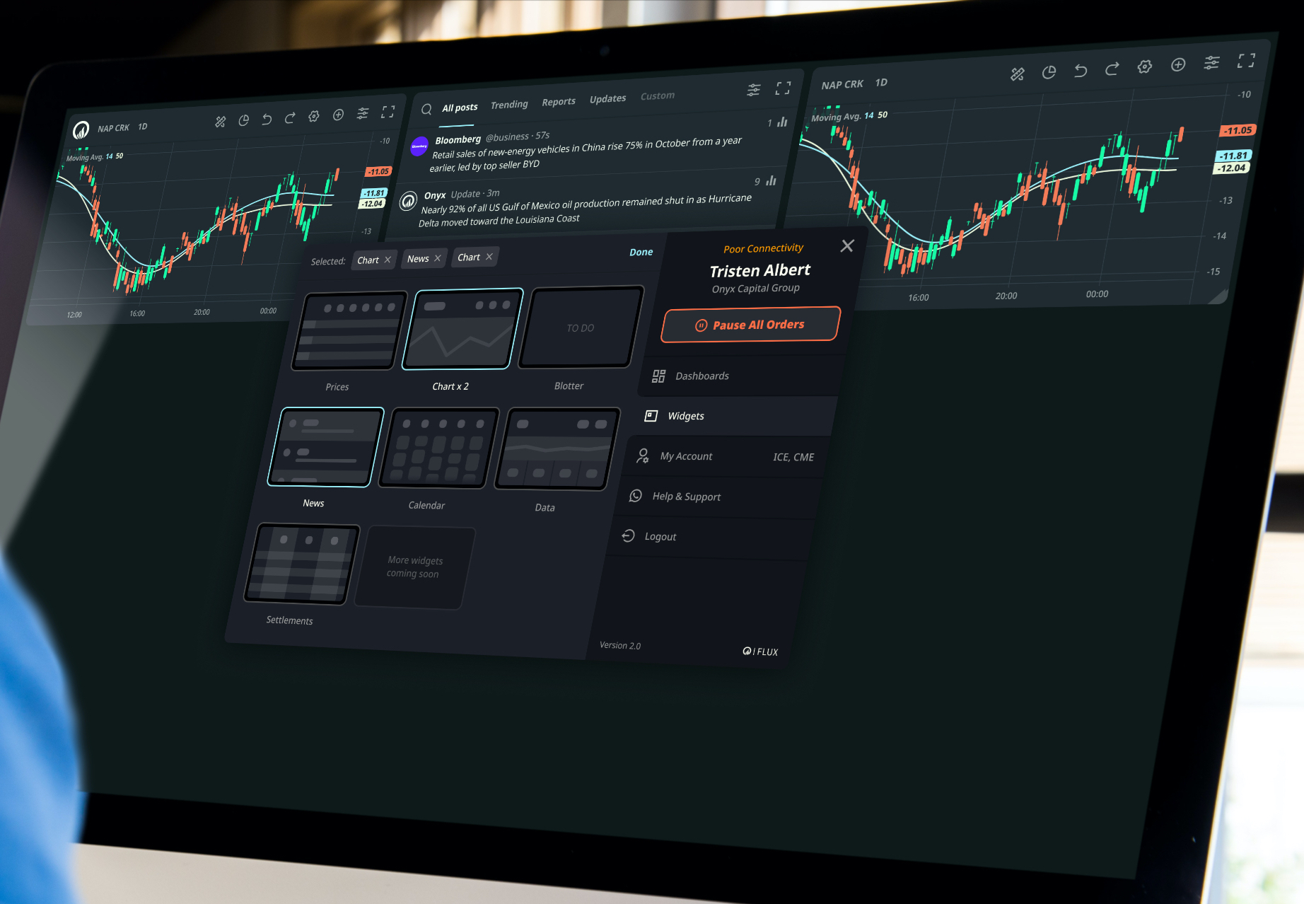Working with various traders and industry experts, we simplified the application by allowing traders to build their own dashboards via a widget system. We slightly reconfigured how the data is presented to match that of some popular competitors and simplified the mobile experience to only show prices, which is all that traders would need access to hen they are not sat at their desks. Feedback sessions were successful as the app is not only more desirable, it is also now a platform on which Onyx can build as they grow and change direction, instead of having to change the platform as they build out new features - a new feature or module can simply now become a new widget traders can add themselves, where they want, and how they want.