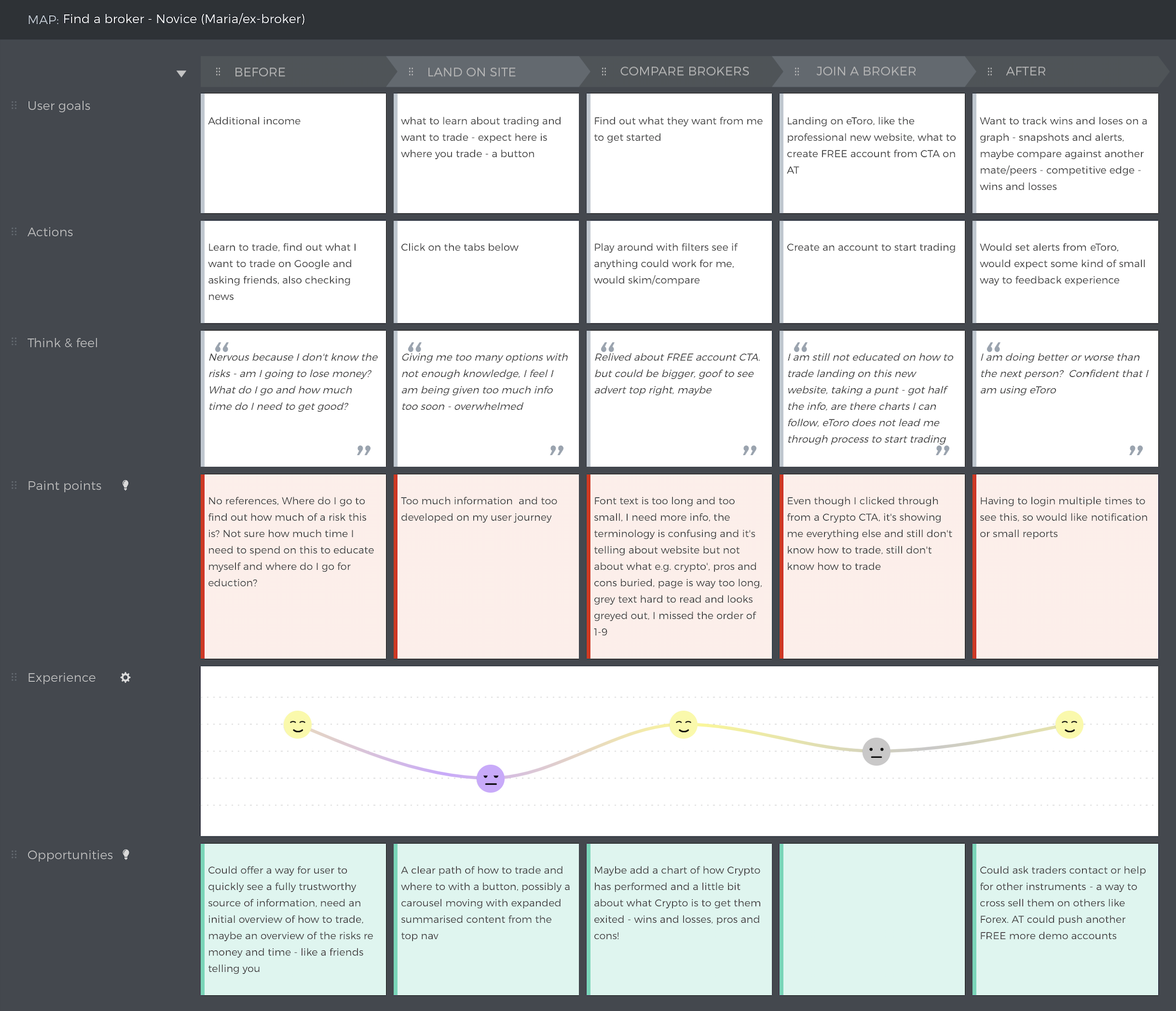 I first check if any has been done before (at SymphonyAI a BA had done some great research that was nearly forgotten about). Then I carry out a discovery phase myself which should consist of: (1) Workshops - 18 people is ideal as this means I can do three 6-people workshops. These are great for getting a lot of reliable information in one go; (2) Interviews - the most common method as this can be done with anyone, anywhere at any time, I like to record interviews in a customer journey map format using UXPressia which can then be fed into a higher level service design blueprint format later, this method provides the most depth; (3) Surveys - less reliable on an individual basis but you get an unlimited amount of people taking them for you so you arrive at the truth in the sheer breadth of data you collect.